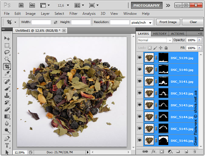 Фотошоп ненадолго задумается и в конце концов добавит к каждому изображению