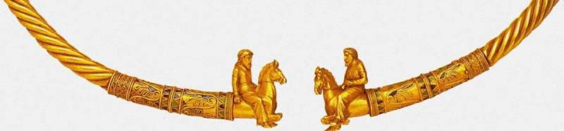 Шейная гривна, золото, цветное стекло, 4-5 в. н.э.